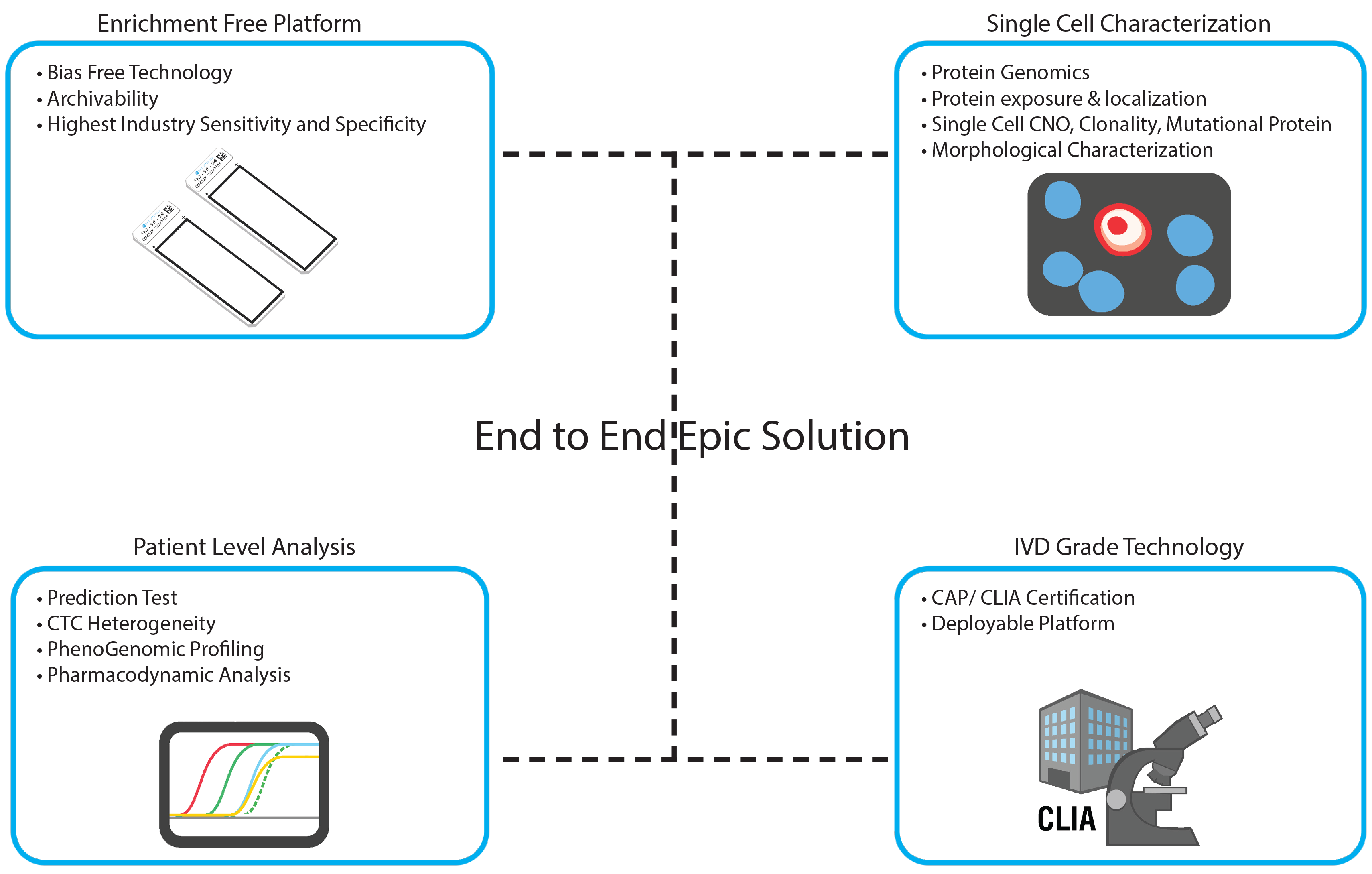 The Epic Sciences CTC technology is a powerful rare cell detection and characterization platform aimed to ensure no cell left behind®. Since its incorporation, Epic Sciences has partnered with biopharma and academic institutions to provide a comprehensive view of cancer cell biology. Epic Sciences’ technology is currently being used in over 60 clinical trials and more than 150 collaboration projects. As of today, it has tested over 10,000 patient samples. The Epic Sciences CTC detection and characterization platform has been part of 50 peer reviewed papers, abstracts and posters which have been published and presented by leading academic, biotech and pharmaceutical collaborators.
